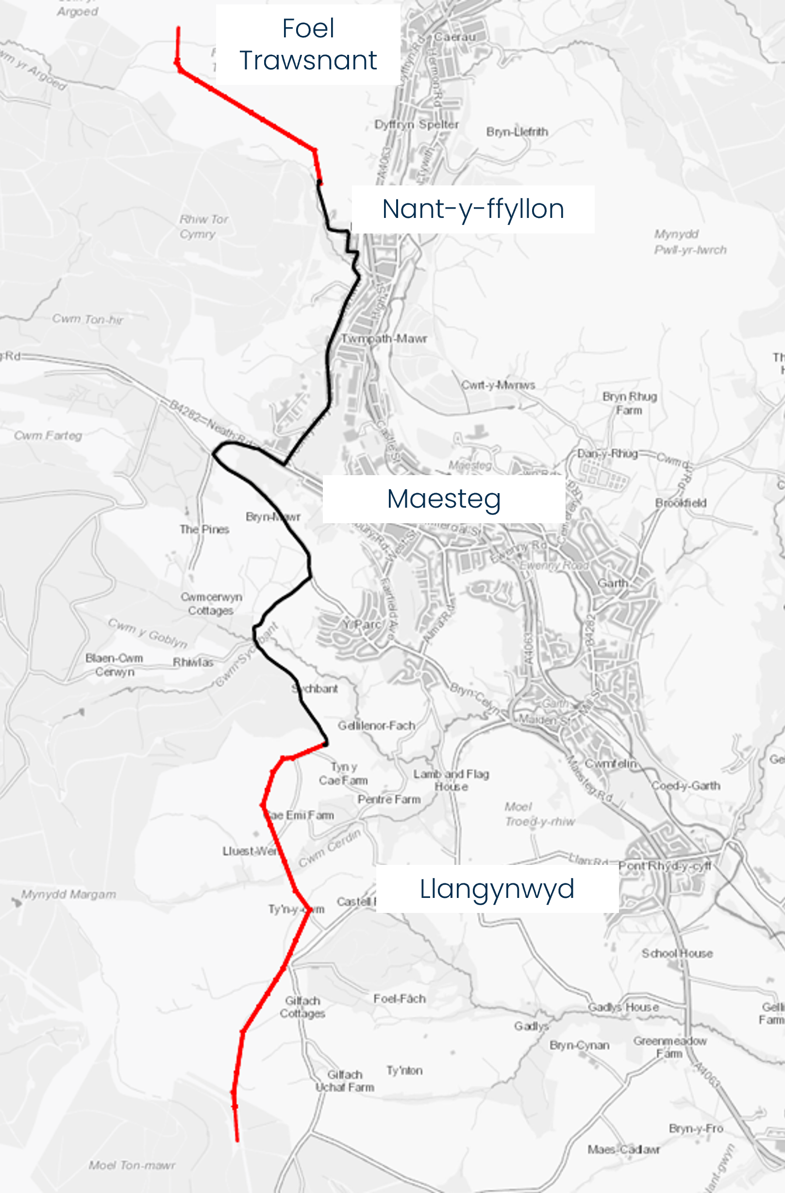 In April 2023, Foel Trawsnant Wind Farm was consented and will comprise of 8 turbines at 145m height to tip. The wind farm will be constructed to the north-west of Maesteg within the boundaries of Neath Port Talbot CBC.
